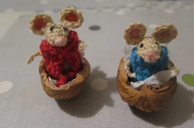 Mini myšky ve skořápce ořechů.