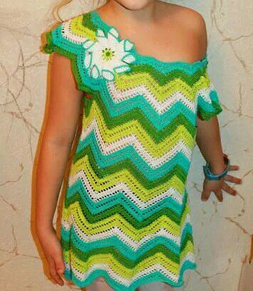красивый зизаг.цветовая гамма отличная, только не понятно.специально спущено плечо или девочка просто так кокетничает