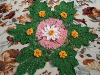 Вязала очень давно, размер не помню, но где-то сантиметров 50 в диаметре.