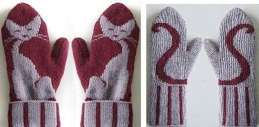 Связав варежки, вы можете украсить их вот таким незатейливым орнаментом, по-моему замечательно смотрится. Особенно эта идея понравится любителям кошечек и детям