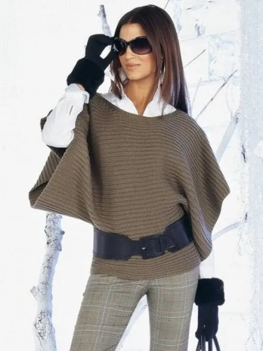 Крой Т-образный, очень простой. Рассчитать петельную пробу, учитывая растяжимость резинки и направление вязания. Вязание поперечное, от начала одного рукава до конца второго. Для баски петельную пробу рассчитывать в более натянутом состоянии резинки (т.е. кол-во петель в 1см при начале вязания рукава и кол-во петель для баски — значения разные), т.к. именно на бедрах эта вещь фиксируется, и должна сидеть плотно, не сползать.