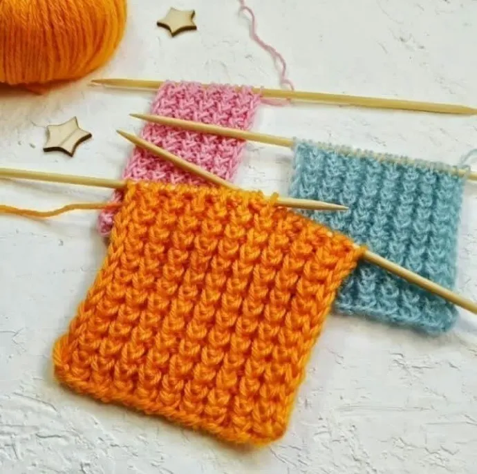 1 ряд узора — 1 изнаночная, 2 лиц. провязать вместе лицевой за задние стенки, не снимая петли со спицы, провязать только 1 верхнюю петлю за заднюю стенку 1 лицевой, в конце ряда 1 изнаночная