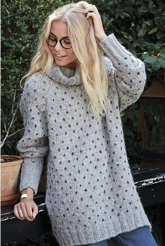 Пряжа (96% неровной шерсти альпака, 4% нейлона; 50 г/110 м) – 9 (10) 11 (12) мотков серой меланжевой (цвет А, основной), 1 (1) 2 (2) мотка темно-зеленой (цвет В, для узора); круговые спицы № 5,5 длиной 40 и 80 см; чулочные спицы № 5,5; ок. 15 маркеров для вязания.