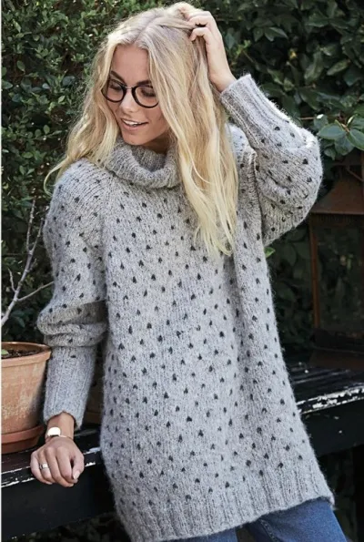 Мелкий узор и фактурная пряжа делают эту модель очень «домашней» и уютной.