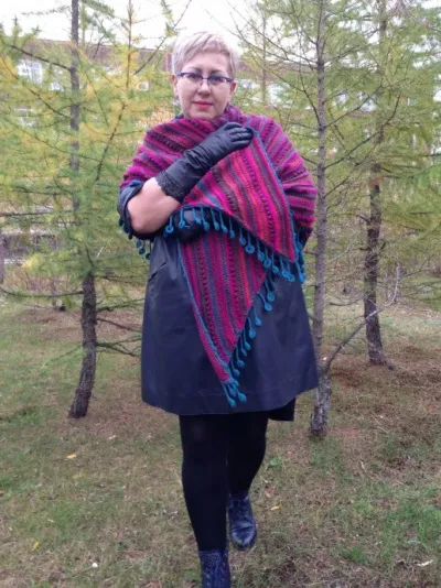 Классная шаль! Цвет приятный, яркий, видно что тёплая и уютная.