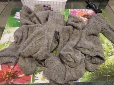 Вот сколько носков навязала! 10 пар! Готовлюсь к дачному сезону.Соседям подарю.Пряжа рассказовский стриженный пух+пух с ангорой.Вязала машиной нева 2.На одну пару пошло примерно 80 г.