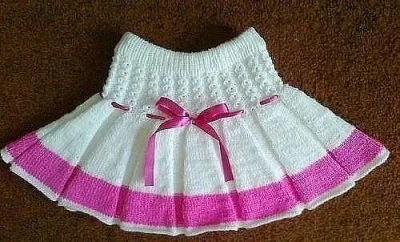 Материалы: 150 грамм белой акриловой пряжи, 350м/100 грамм, резинка для пояса, атласная лента розового цвета.