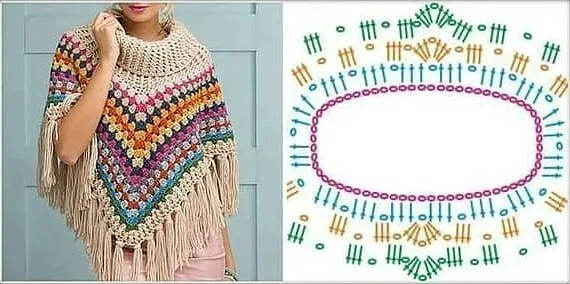 Разноцветное пончо крючком