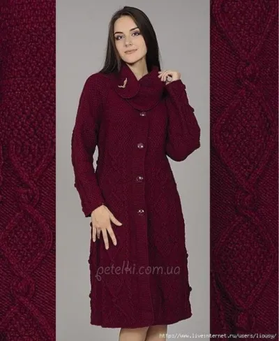Красивое пальто рельефными узорами с интересным воротником