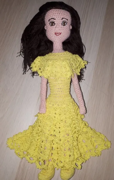 Связала такую куклу по просьбе дочки. Получилась очень практичная. И волосы можно причесывать. И руки, ноги гнутся. Долго она лежала в шкафу, т.к. не решалась взяться за лицо. Но, глаза боятся, а руки делают ).