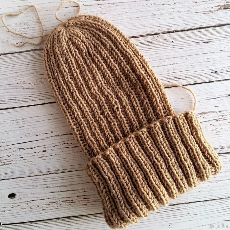 Далее вяжем резинку 2*2, 2 лицевые, изнаночные. Я вяжу шапочку с отворотом, поэтому до убавок у меня получается 30 см.