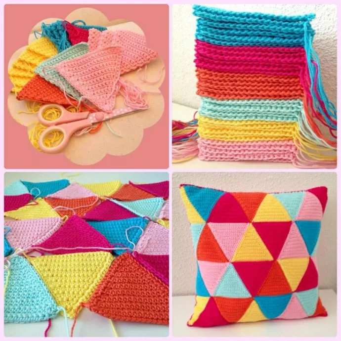 Чехол для подушки из разноцветных треугольников