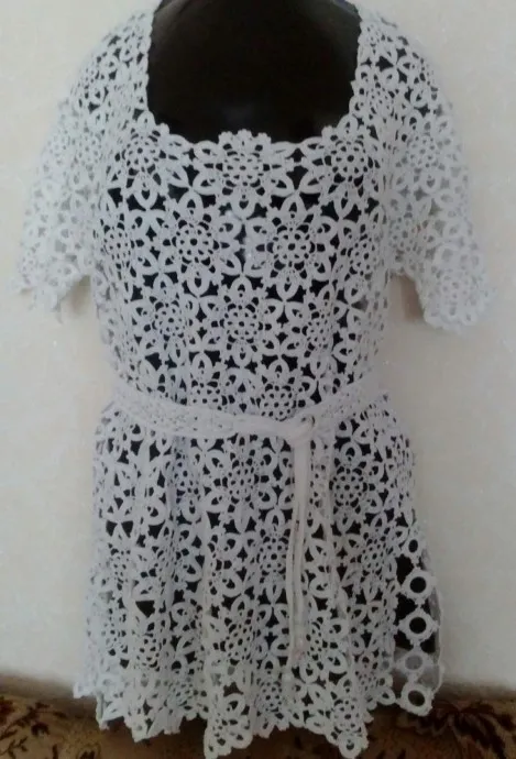Туника связана мотивами из Пехорки белое кружево, 425 м/50 г. По бокам ввязала колески "Гамма"