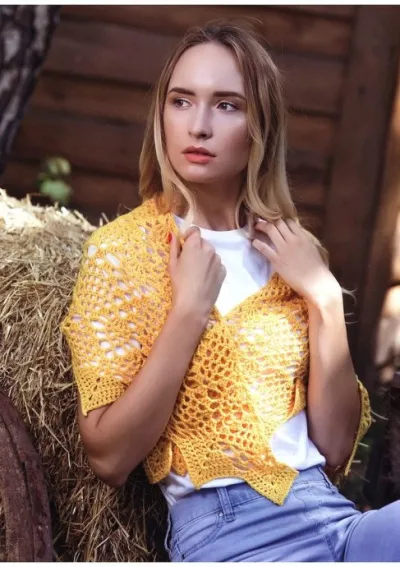 Нежная желтая шаль крючком
