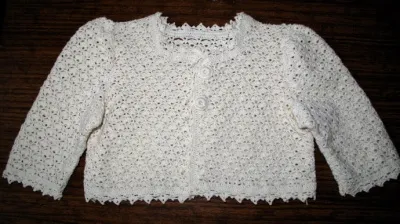 Кофточка крючком, пуговицы самодельные, первая попытка вязать в стиле Irish crochet.
