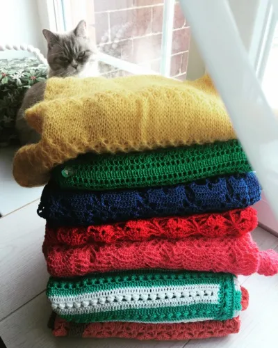 Добрый день друзья, подруги! Вот таких стопок у меня целый шкаф и несколько коробок))) Вяжете ли вы для себя так много вещей и одеваете их хоть иногда?