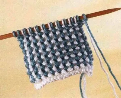 4. Поскольку вы провязали этот ряд, снимая каждую вторую петлю, у вас на спице присутствуют петельки обоих цветов.
