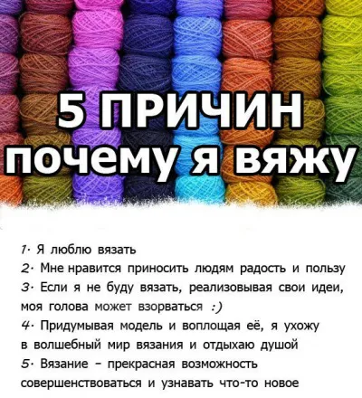 Даже не знаю, как ответить на вопрос: почему вяжу. Не могу сидеть просто так, ничего не делая. Поэтому, если выдаётся свободное время, вяжу, не важно что вязать, но спицы или крючок должен быть в руках. Одна беда, начался шейный остеохандроз, приходиться регулярно откладывать вязанье и зарядочку