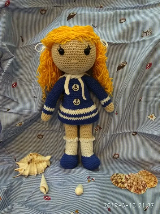 Кукла морячка 32 см из ниток YarnArt Jeans, куклу вязала по МК кукол,но образ придумала сама.