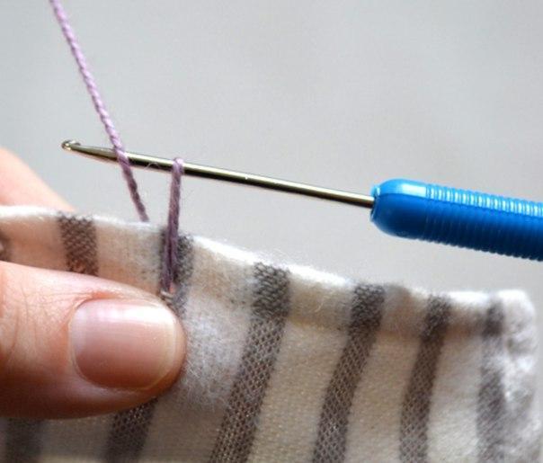 Идея не нова, но достаточно актуальна. И не только для обвязывания салфеток, скатертей, пелёнок, полотенец и др. «прямых» изделий. Я, например, решила с помощью этого приема обновить очень светлые летние льняные брюки — вчера поздно вечером начала. Распорола боковые швы, обвязала их крючком льняной неокрашенной нитью (правда, просто ст.б/н, а не как на рисунках). Затем ввяжу незамысловатый ажурный узор. Получатся своеобразные лампасы более темного, чем са́ми штанцы, цвета. Добьюсь сразу нескольких эффектов: и расширение брюк, и вертикальную стройнящую полоску, и небольшую «вентиляцию» в жару. Ну, и брюки немного другого дизайна. Степень ажурности позволит носить брюки только с трусиками, без дополнительных укрывательств и подклада.