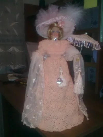 Кукла в варежках. По заказу обвязала, но собака хозяев покусала руки, пришлось спрятать.