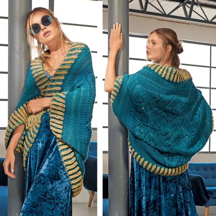 Эта накидка выполняется от середины, образуя квадрат, — из ажурного узора на спинке складывается гигантский цветок.