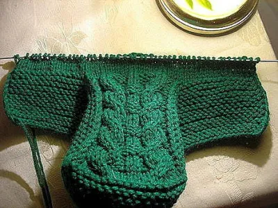 Спицы номер 2, нитки толщиной примерно как спицы. На один тапок 38-го размера уходит примерно 50 граммов ниток. Для 38 размера набрать 84 петли. Вязать платочной вязкой 24 ряда.