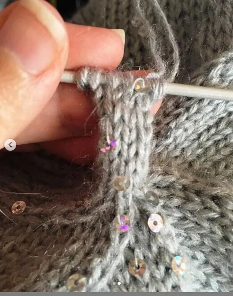Переходим к вязанию основного полотна, одновременно меняя размер спиц. Вяжем лицевой гладью (все ряды лицевые). В первом ряду через каждые три петли делаем прибавку. В итоге на спицах должно быть 120 петель.
