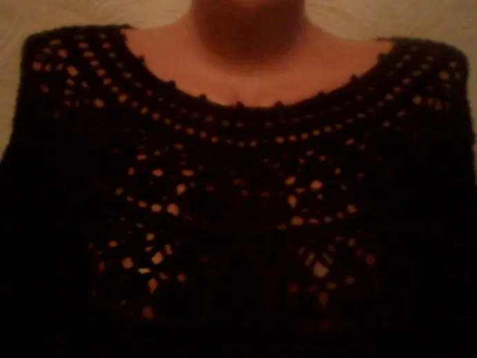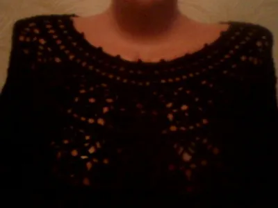 Жаль, что фото не совсем удачное. А платье, скорее всего, очень красивое и торжественное. Работа кропотливая, из чёрной пряжи очень трудно вязать, но оно того стоило. Спасибо за схемку.
