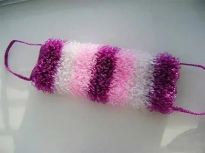 Вязать мочалку несложно: 1 ряд столбики без накида, 1 ряд вытянутые петли.