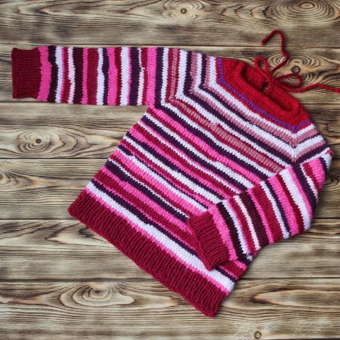 Замечательный свитерок получился, утилизация прошла успешно, я тоже фанатка бесшовных вещей, цвета ниточек подобрались очень удачно, смотрится ярко, позитивно!