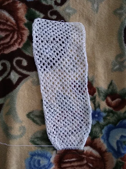 Набрала 35 петель + 4 кромочные. Связала прямоугольную полоску узором "Сеточка с перекидами"