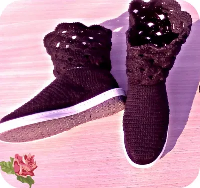 Извините, написала и потом прочитала комменты.У нас подошвы не продаются для вязания, значит нужно делать самой… а как потом привязывать?