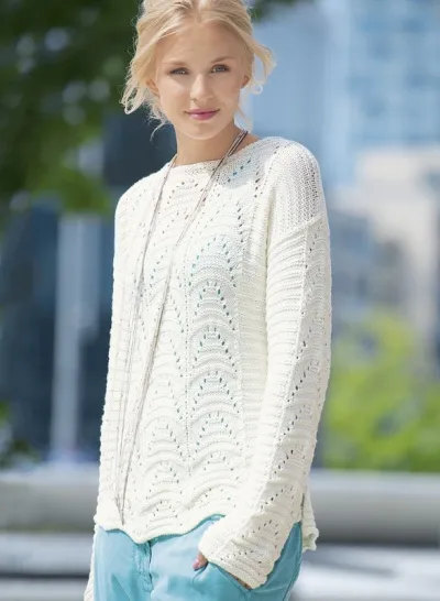 ВАМ ПОТРЕБУЕТСЯ Пряжа (50% вискозы, 50% полиакрила; ок. 106 м/50 г) 600 (650) 700 г белой; спицы №4,5; короткие круговые спицы №4,5.