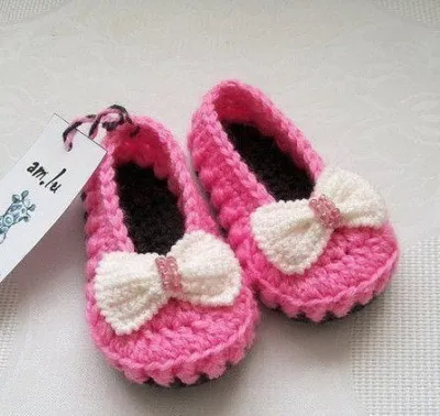Связаны из 100% акрила (50 гр. 150м.) в две нити, крючок №4, ушло пол моточка розовых ниточек (моток 50 гр.) и остатки темно-серого для подошвы.