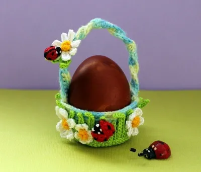 Пришить ромашки на корзинку. На цветы пришить желтые серединки.