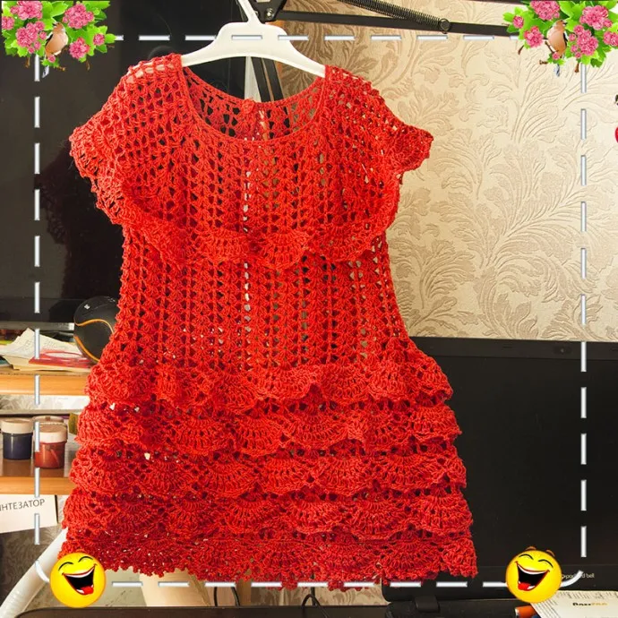Платье крючком из "Ромашки" на девочку 3-х лет.