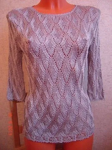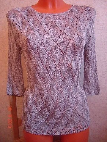 Узор красивый пуловер, сказочно нежный, несмотря на блеск металла, даже схема есть а прочесть подписи у условных обозначений не могу. ((