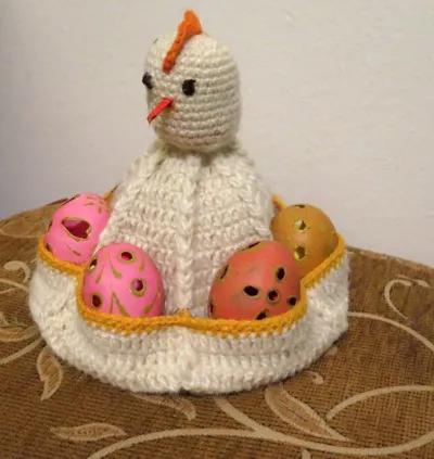 Здравствуйте. А вы вязали по схеме или на глаз. Мне что бы связать что то крючком нужна схема или описание. Белинда подкинула хорошую идейку — связать зайку — хозяйку для кухни. В Германии Пасха прошла и я бы вместо яичек положила пакетики с чаем.