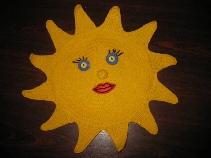 Не так давно я просила совет про вязание мирилки в садик.Вот что у меня получилось))) Две детские ладошки в солнышко и "Мирись-мирись и больше не дерись". надеюсь, в садике понравится. Если кому-то будет интересно, с удовольствием поделюсь своим опытом вязания мирилки-солнышка.