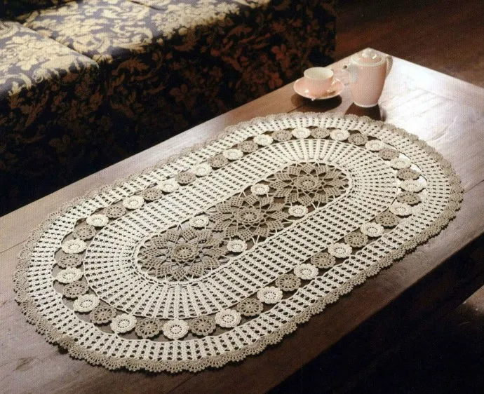 Крупная двухцветная салфетка, связанная крючком