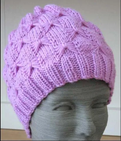 Эта шапочка связана по кругу, с узором "бабочка", повторяющимся практически по всей поверхности.