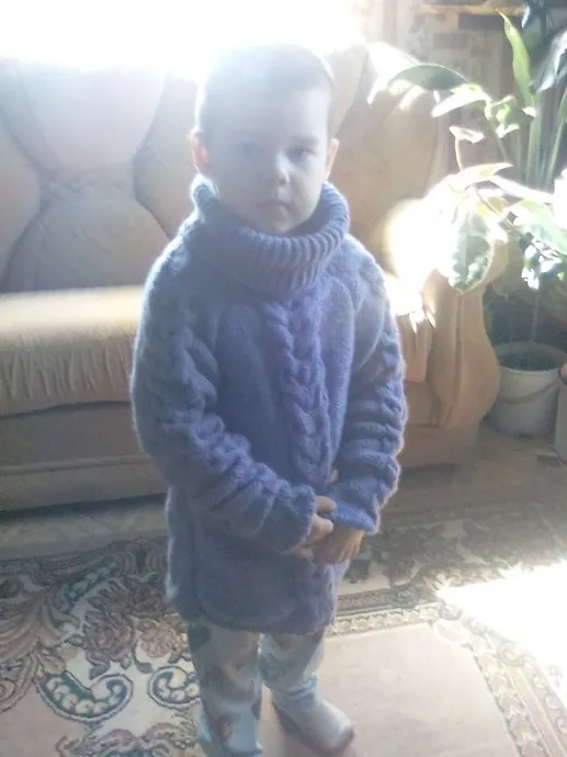 Связала свитер братику. Моя проблема, у меня косы получаются слишком стянуты. И немного большеват получился