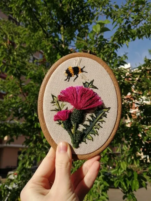 Над чертополохом мне пришлось потрудиться. Здесь были дополнительные техники. Наиболее "страшной" мне показалась техника плетения иголкой.