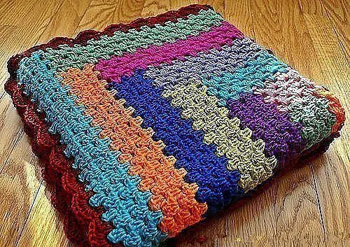 Простой плед в основе с бабушкиным квадратом