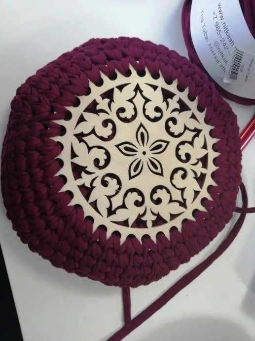 Сумочка из трикотажной пряжи с деревянной вставкой!