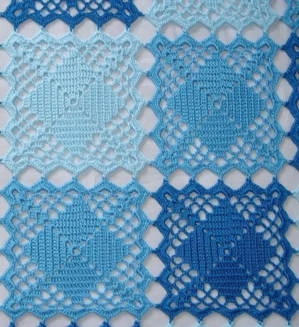 50 оттенков голубого - плед из квадратных мотивов