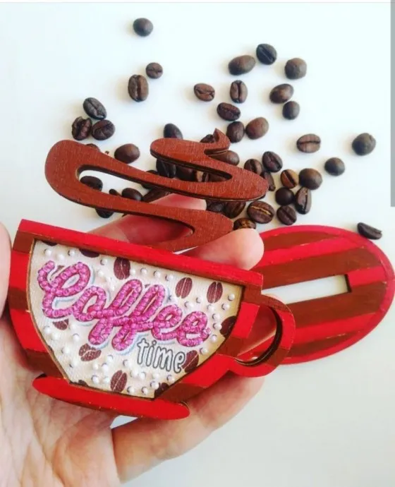 Магнитик, вышитый бисером, рамочка из дерева - раскрашено акриловыми красками!