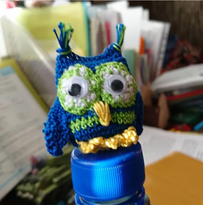 Как-то делала брелки в виде маленьких амигуруми и сын попросил сделать ему талисманчик. Вот и получился совенок.