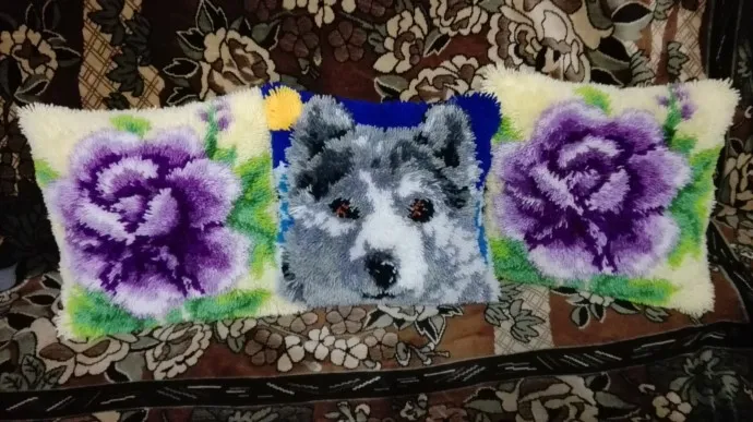 Здесь нет ничего сложного, покупаешь набор и делаешь. Выписывала через интернет. в наборе наволочка- одна сторона страмин, другая ткань и молния, затем нитки, и сам рисунок разбитый на квадраты и квадратики с указанием цветов, в комплект входит так же крючок.